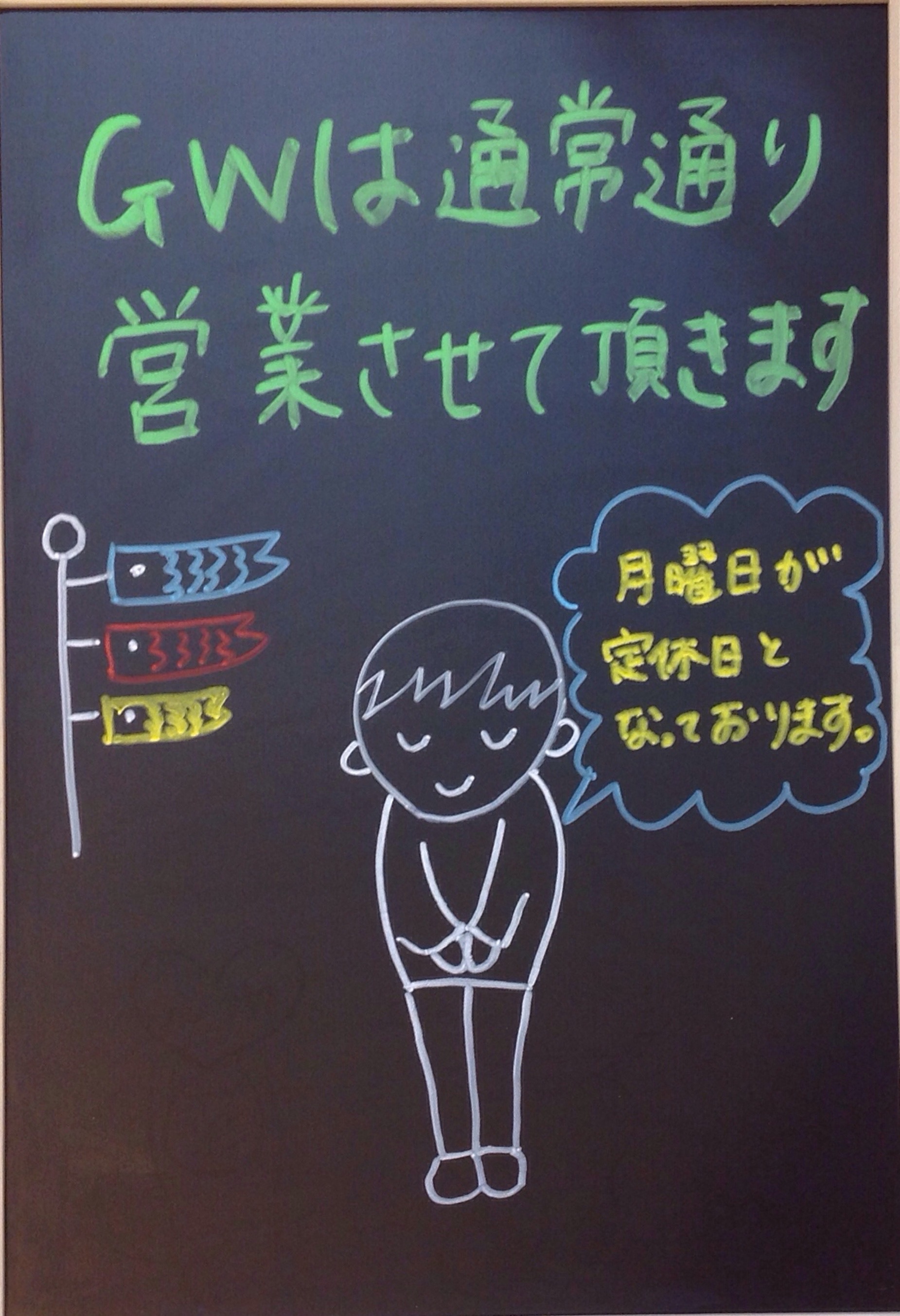 ゴールデンウィーク中は通常通り、月曜のみお休みをいただいております。