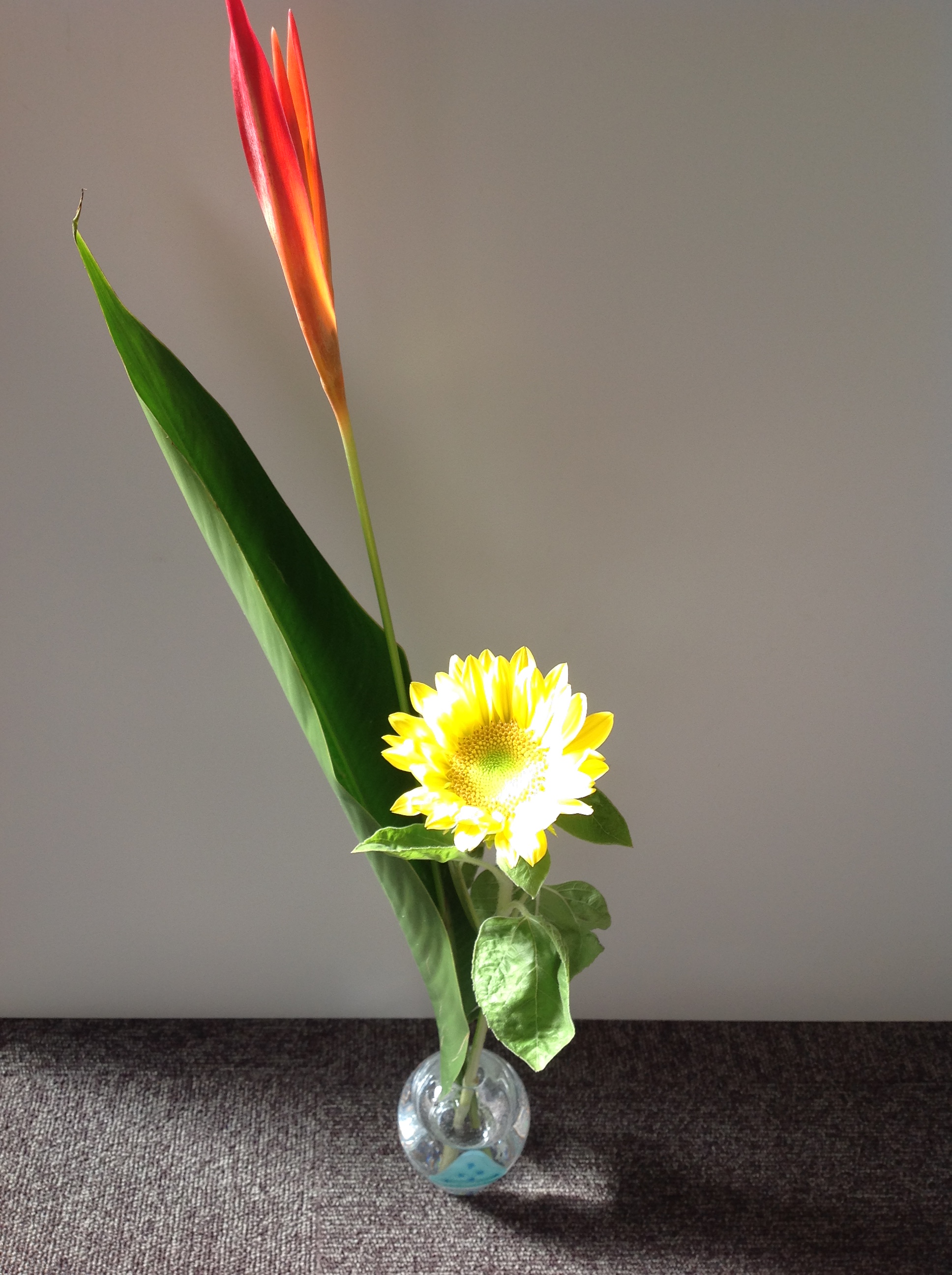こちらはヘリコニアアンナ・ひまわり・胡蝶蘭です。